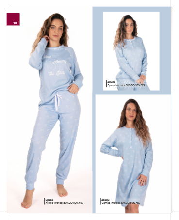 Nuestros pijamas están diseñados pensando en la comodidad y el descanso. Con materiales suaves y de calidad, nuestros pijamas ofrecen un ajuste perfecto y una textura agradable al contacto con la piel. Disponibles en una variedad de estilos, colores y tallas, son la opción ideal para relajarse en casa.